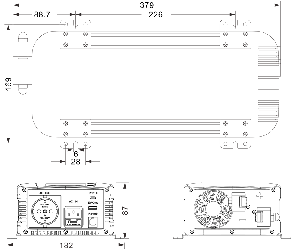 मेकानिकल रेखाचित्र: (379x182x87mm)