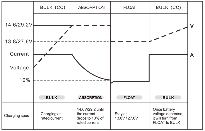 ब्याट्री नियन्त्रण (3-चरण ब्याट्री चार्जरहरू) थोक / अवशोषण / फ्लोट