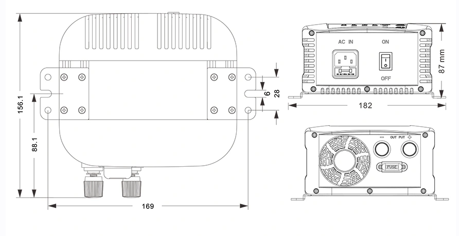 मेकानिकल रेखाचित्र: (१५६.१ × १८२ × ८७ मिमी)