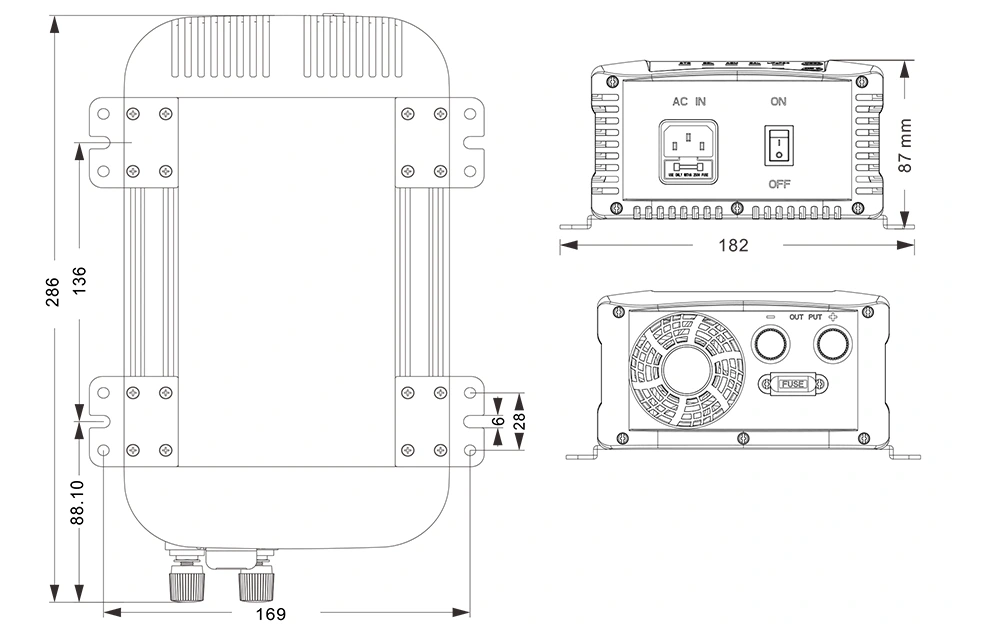 मेकानिकल रेखाचित्र: (286×182×87mm)