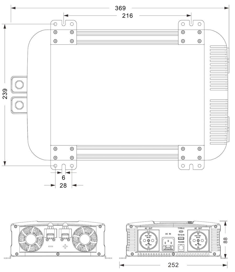 मेकानिकल रेखाचित्र: (३६९x२५२x८८ मिमी)