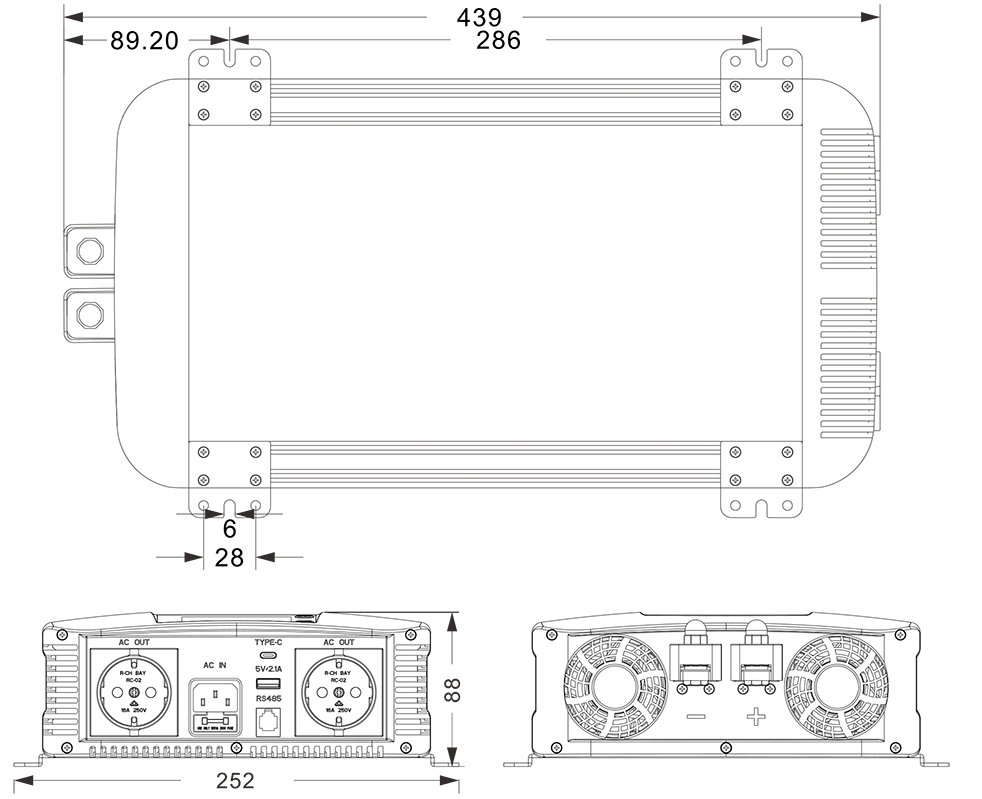 मेकानिकल रेखाचित्र: (439x252*88mm)