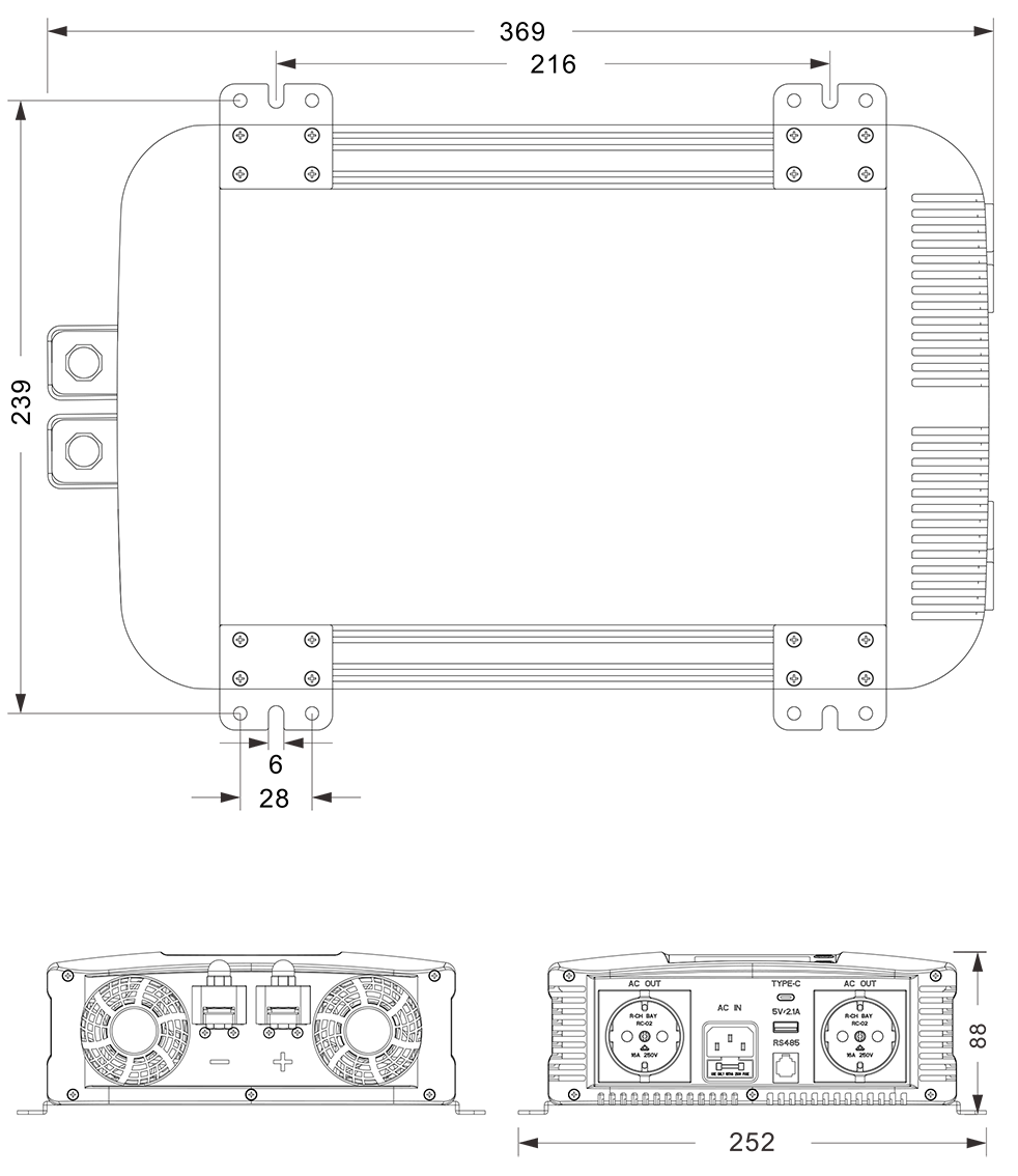 मेकानिकल रेखाचित्र: (३६९x२५२x८८ मिमी)