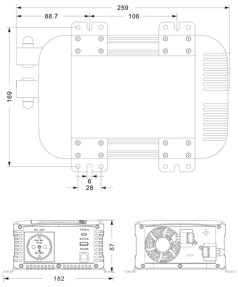 मेकानिकल रेखाचित्र: (259x182x87mm)