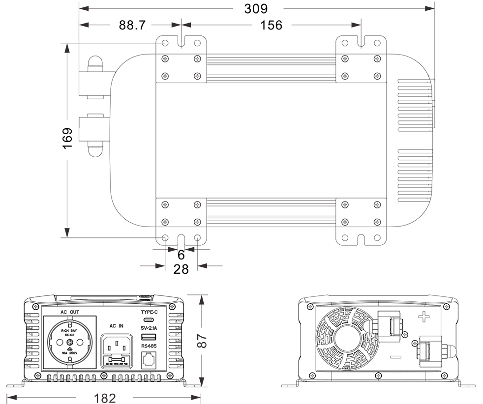 मेकानिकल रेखाचित्र: (309x182x87mm)