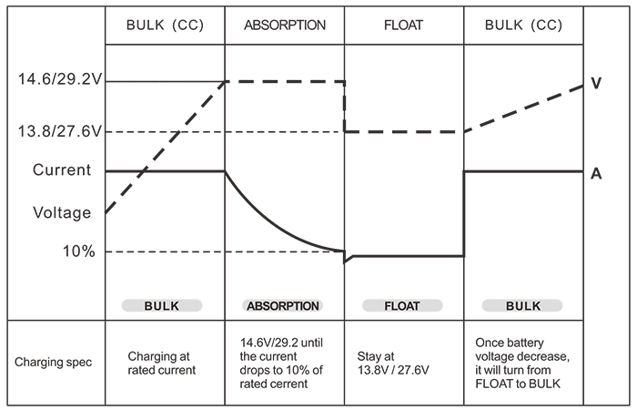 ब्याट्री नियन्त्रण (3-चरण ब्याट्री चार्जरहरू) थोक / अवशोषण / फ्लोट