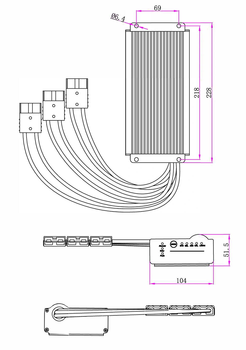 मेकानिकल रेखाचित्र: (228x104x51.5mm)