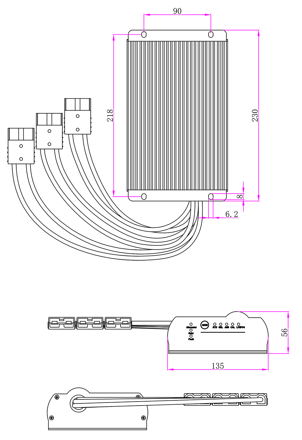 मेकानिकल रेखाचित्र: (230x135x56mm)